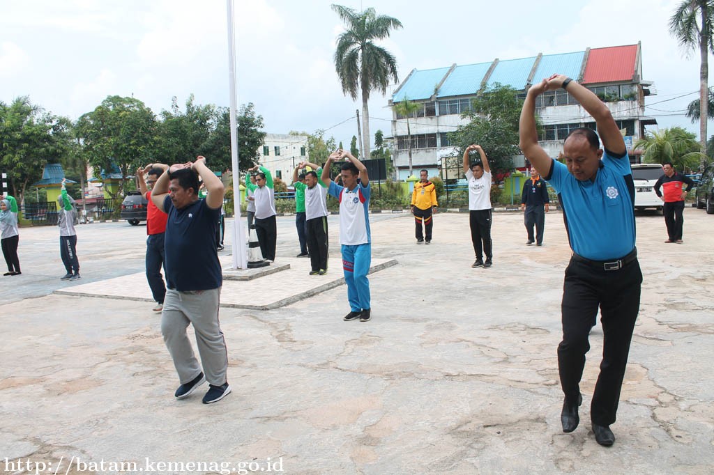 Usai apel, semua pejabat dan pegawai berbaris mengambil posisi untuk senam. Untuk instruktur senam, pihak Kemenag Batam mendatangkan Instruktur dari luar.